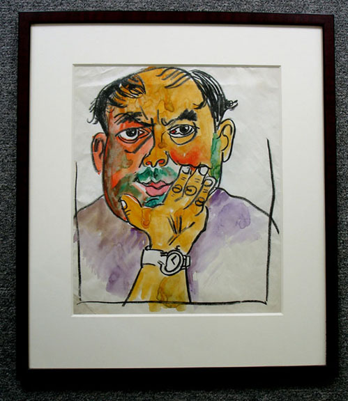 Zero Mostel, Self Portrait, 17" x 14" unsigned, mixed media on paper, museum quality framing.